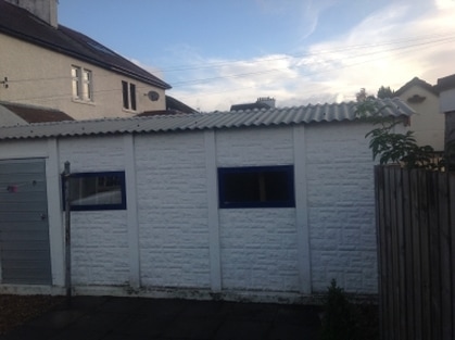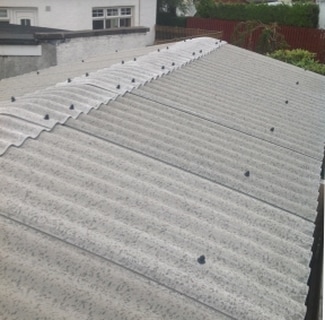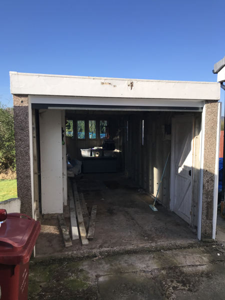 Many garages like this have an asbestos roof. We are licensed to remove asbestos as we are registered with SEPA. The garage roof was replaced with a Pent-style roof.
